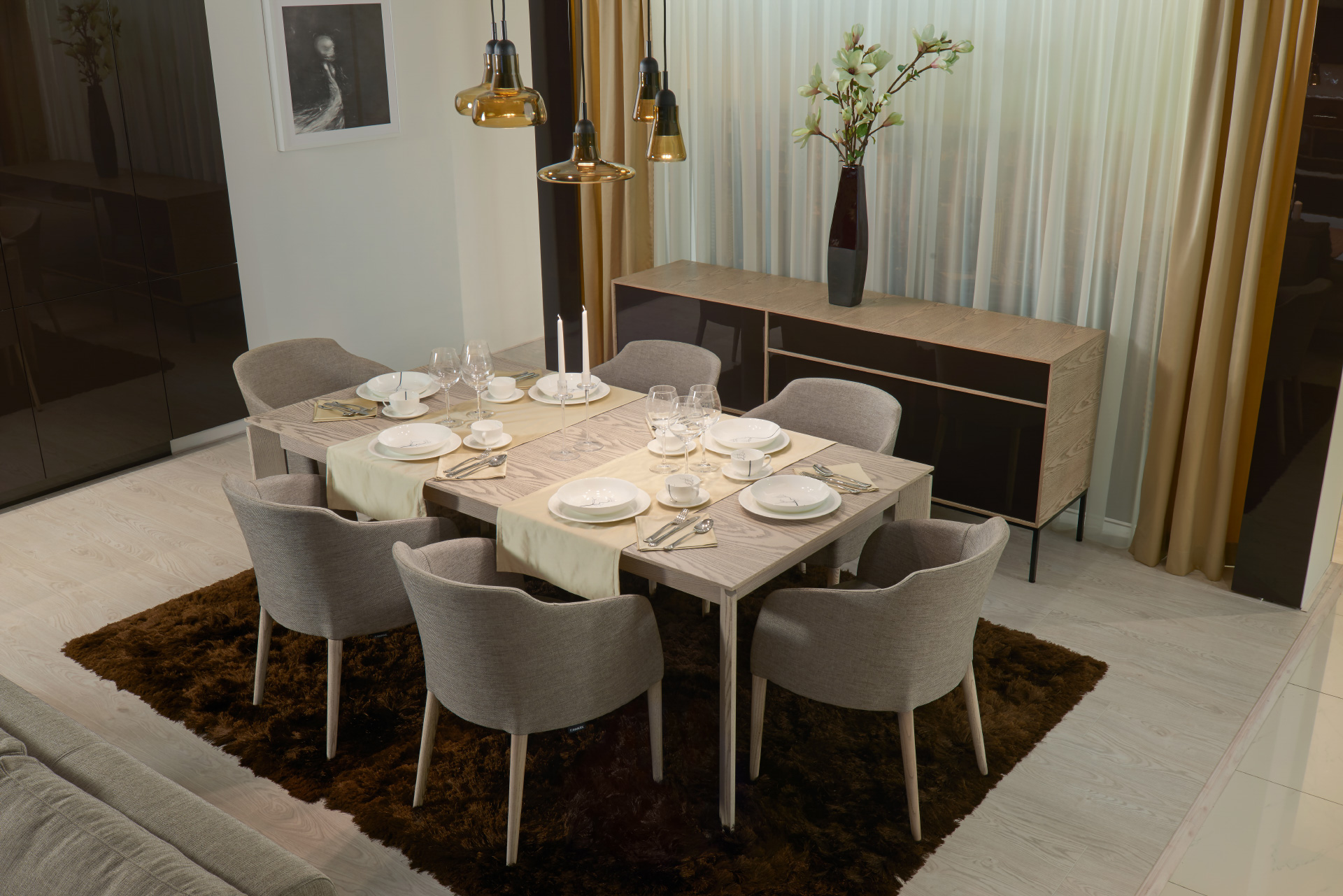 Ergonomie kuchyní jsou různé. Tato vydařená sestava je v rovném provedení s charakteristickými hladkými dvířky.